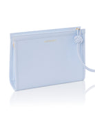 Crafted in ice blue vegan lizard leather with a deep blue wipeable nylon interior, this bag balances elegance and function. Room for the whole Aeston West ritual, plus whatever else the day demands. Finished with a gold-foiled logo and a knotted pull that doubles as a detachable keychain.